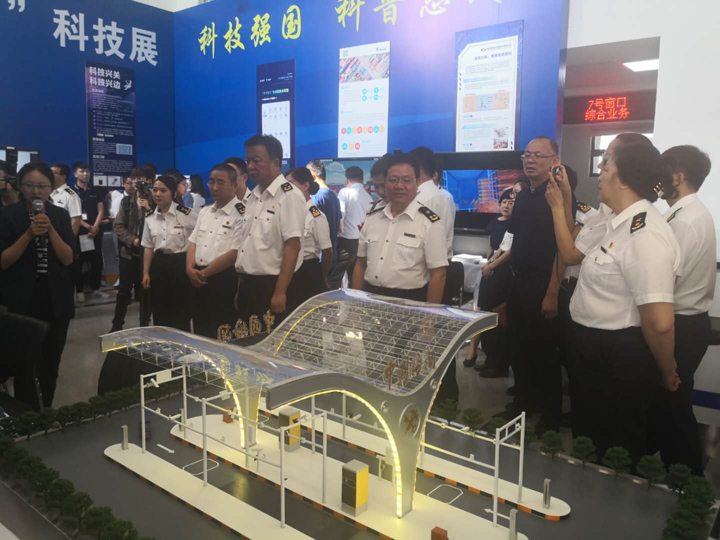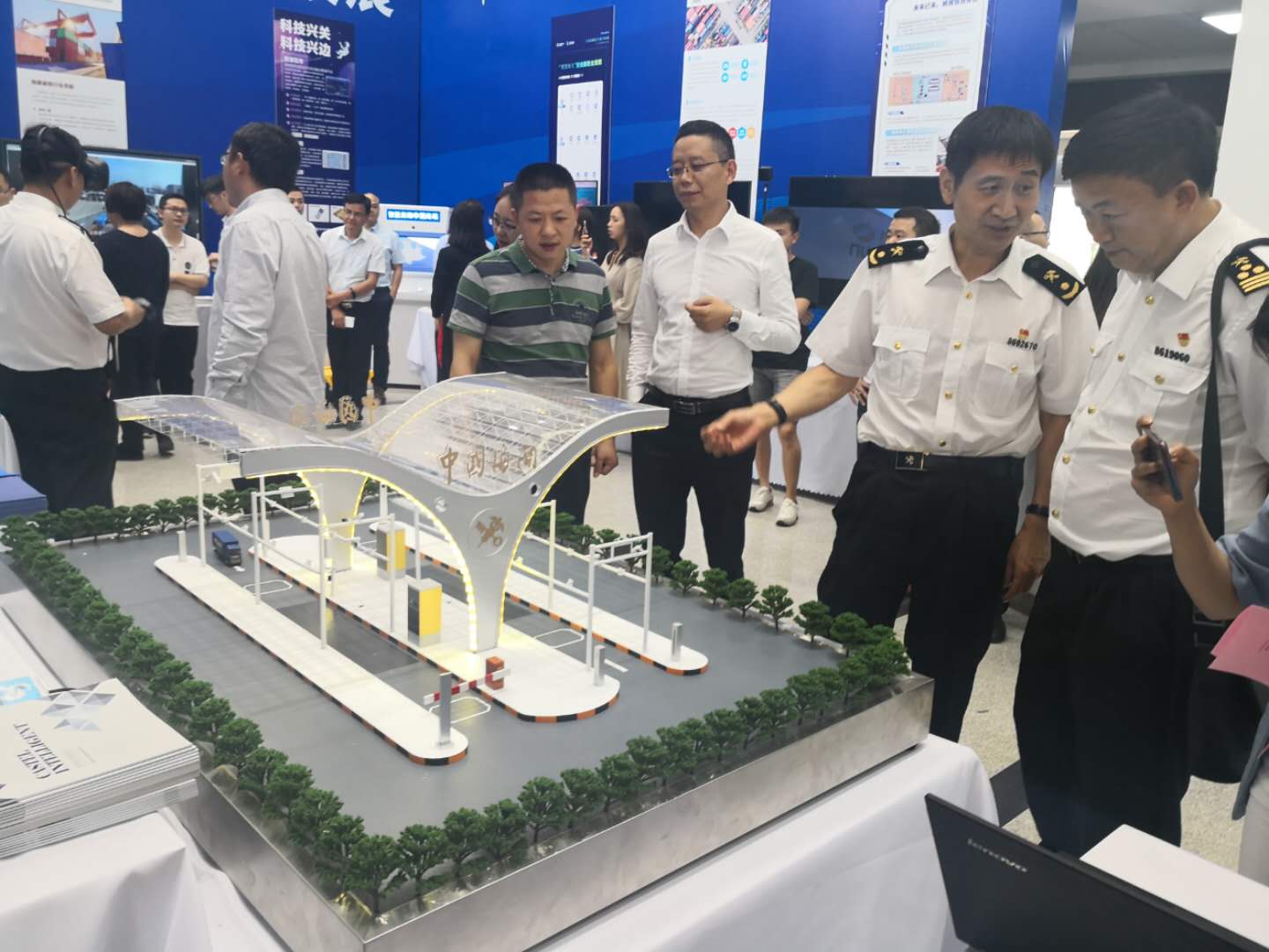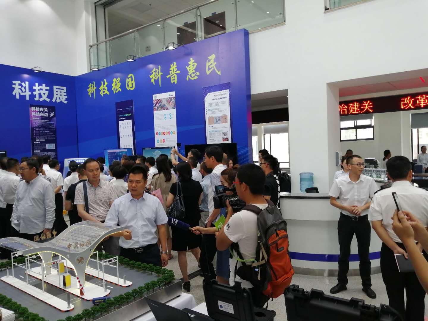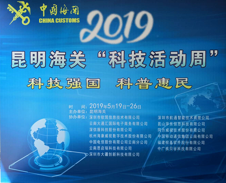2019昆明海關(guān)“科技活動周”科技展于5月20日至5月26日在昆明海關(guān)一樓大廳正式開啟。本次活動周圍繞“科技強國、科普惠民”的主題,通過展板、展臺、體驗式交互等方式,對科技創(chuàng)新助力云南口岸通關(guān)便利化的發(fā)展歷程、重大成果以及未來規(guī)劃進行了展示?;顒蝇F(xiàn)場航通展出了所開發(fā)的云卡口系統(tǒng)等智能化軟硬件設(shè)備、全景業(yè)務(wù)監(jiān)測平臺、跨境電商解決方案以及邊民互市貿(mào)易申報系統(tǒng)等全套解決方案。
