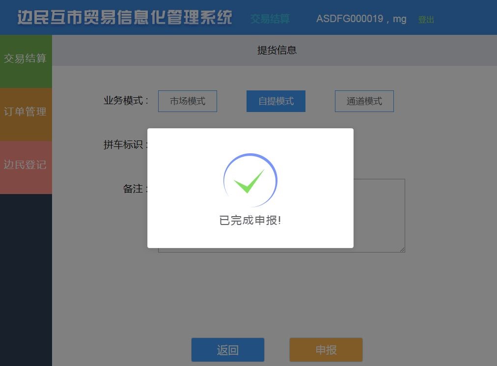 2019年6月3日,航通在滿洲里海關(guān)下轄、滿洲里中俄邊民互市貿(mào)易區(qū),順利完成航通邊民互市貿(mào)易區(qū)運營管理平臺產(chǎn)品(簡稱“航通運營管理平臺”)與總署非貿(mào)業(yè)務(wù)管理系統(tǒng)邊民互市貿(mào)易子系統(tǒng)(簡稱“總署互市統(tǒng)一版系統(tǒng)”)的聯(lián)調(diào)測試,打響海關(guān)總署互市統(tǒng)一版系統(tǒng)試運行對接聯(lián)調(diào)的第一槍!